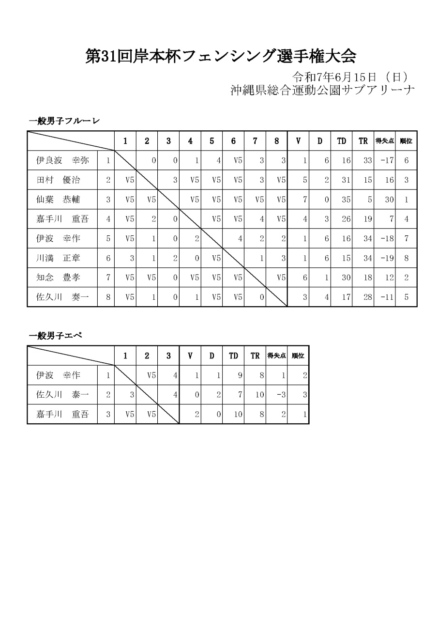 第31回岸本杯フェンシング選手権大会 結果