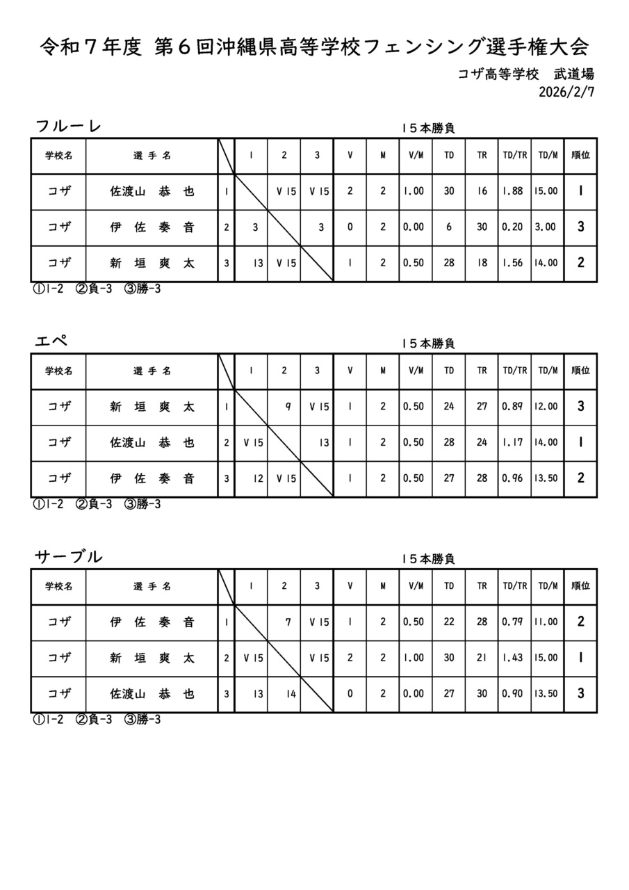 > 令和7年度第6回沖縄県高等学校フェンシング選手権大会結果