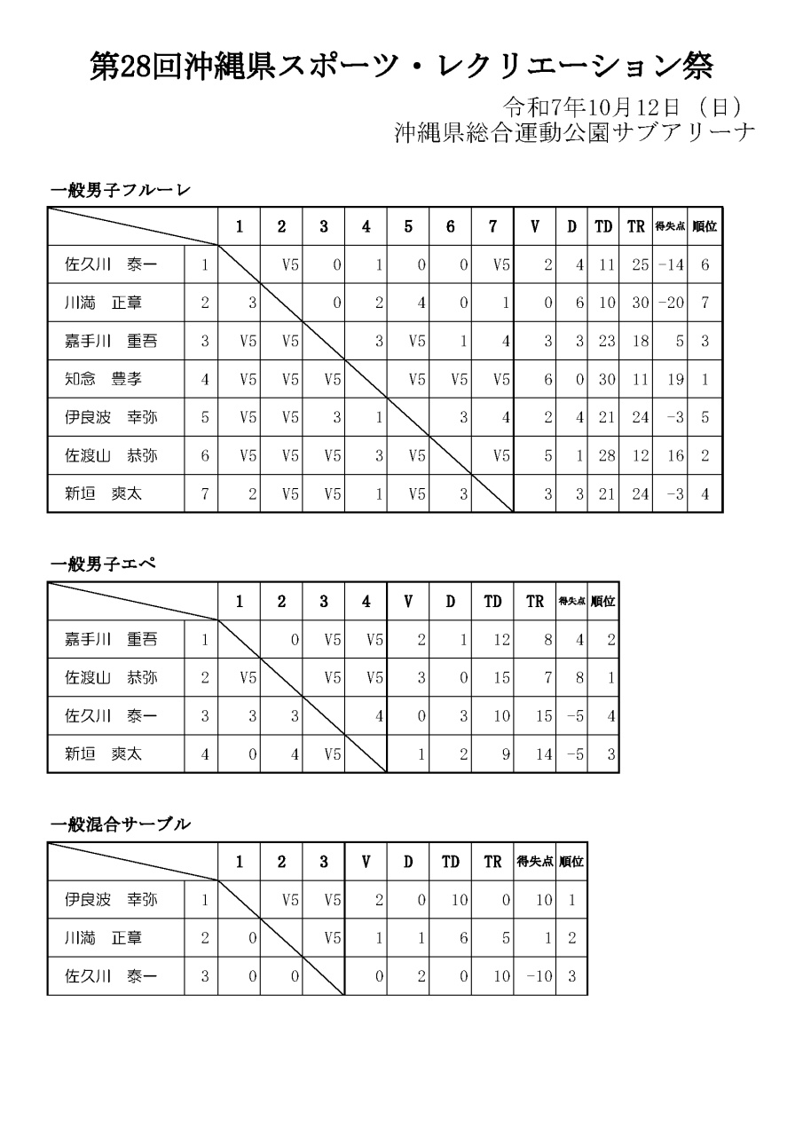 令和7年度沖縄県高等学校新人体育大会第31回沖縄県新人体育大会フェンシング競技結果